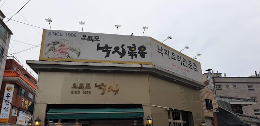 고독한 미식가 성지순례를 하려고 들린 남구에 위치한 오륙도 낙지볶음입니다. 경대쪽에는 항상 주차하기가 힘든데 계약되어있는 주차장도 있기 때문에 차가 있으셔도 쉽게 가서 드실 수 있습니다. 뭔가 대단한 맛을 기대하신다면 분명 후회하실수도 있는 가게입니다. 적어도 부산에서만큼은 낙곱새가 아주 특별하진 않으니까요 비슷하게 개미집 이런곳만 가더라도 비슷한 맛을 내고 있습니다. 고독한 미식가에서는 그냥 낙곱새와 우동사리를 먹었지만, 정말 여기서 특별한 맛을 느끼고 싶으시다면 돈을 조금 더 쓰시고 산낙지가 들어간 산낙곱새로 드시기 바랍니다. 조리과정은 똑같지만 진짜 산낙지를 사용하시고 그냥 낙곱새 메뉴와는 다르게 산낙지의 내장과 먹물도 먹을 수 있기 때문에 정말 새로운 미식 경험을 하실 수 있을겁니다. 맛은 말해 무엇하겠습니까, 낙곱새 싫어하는 사람...