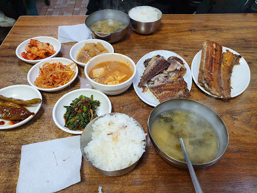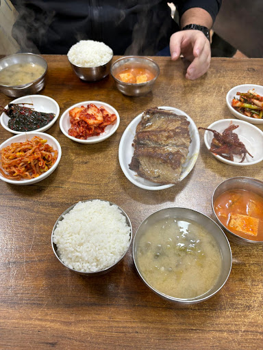 This popular restaurant is known for big portions of fresh-off-the-boat 🐟 mackerel 🐟 grilled to perfection. Tasty side dishes include various kimchis, kimchi soup and fermented soybean soup. Many friendly locals who are regulars here, and no problem if you fancy a beer 🍻 or soju...