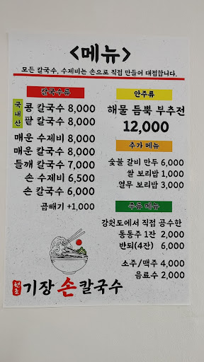 Read more기장손칼국수. 콩칼국수만 먹어 보았는데 진한콩국물에 손칼국수면발에 맛있었음. 콩국물은 국산콩을 사용하여 크림과 같은 식감으로 완전히 갈아 만듬. 씹히는걸 좋아한다면 아니지만 진한맛의 콩국물을 즐길 수 있음. 칼국수 면발은 굵고 굉장히 쫄깃하여 천천히 먹어야함. 쫄깃한 면발을 좋아 한다면 추천함. 물론 일반 국수로 만든 콩국수도 있지만 쫄깃한 칼국수로 드시길. 밑반찬으로 나오는 생김치도 맛있고. 다만 점심 시간엔 손님이 많으므로 대기 시간이 필요하나 칼국수집이기에 대기 많아도 시간은 짧음. 주차는 안되나...