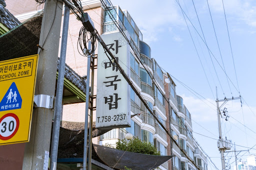 Read more낮에 동네 구경과 해운대까지 마실 라이딩을 마치고 저녁시간. 자전거를 넣어놓고 민락동 주택가 골목에 자리한 자매국밥을 찾아갔다. 상가 단지가 아니라 주택가이고 이 집도 주택을 개조해서 만든 외관.