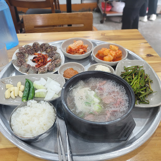 Read more약간은 누렇지만 맑은 국물에 기름기가 가득하며 깊은 맛을 냄. 아주 미량의 후추가 들어갔고 소금간이 되어있고 다대기 없이 대파만 담겨져 나옴. 잘 씻겨 담백한 내장과 기름기 높은 고기가 크기가 비슷하게 썰려 먹기에도 편함. 부산치고는 김치와 깍뚜기의 간이 쎄지않고 새콤한 맛이 남. 정구지무침의 간이 좀 있으며 마늘꼭지를 다 따서 나오는게 만족스러움. 국밥메뉴가 다 따로국밥식으로 나온다고 함. 돼지로 낸 국물말고 다른 것도 섞인 느낌이 매우 강함(아무 것도 섞지않고 그대로 먹는 방법을 추천함). 주차공간이 있으나 협소하고 골목이 좁으므로 인근...