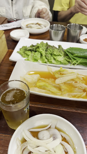 Vraiment très gentils et accueillant. Met très à l’aise, avec menu en anglais et un vrai effort pour comprendre. Ma femme rêvait d’un barbecue coréen, elle l’a eu. Moi qui suis vegetarien j’ai également trouvé mon bonheur avec des nouilles froides incroyables. Ma femme etant enceinte nous faisons egalement très attention à l’hygiène, et ici nous n’avons pas été inquiets un seul instant. Pour finir, les prix sont plus qu’abordables. Nous avons payé 19€ pour un barbecue, des nouilles et une bouteille de soju.