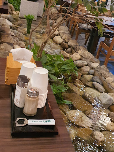 Read more부산 동래구 온천천로에 있는 지국명가 갈비집입니다. 음식이 훌륭합니다. 갈비를 직접 구워서 오기때문에 구울 필요가 전혀 없고 맛있는 된장찌개가 1 인 1 찌개로 나오기 때문에 눈치 볼 생각도 안 하시고 맘껏 드시면 됩니다. 밥도 굉장히 맛있어요. 밥 맛있는 집은 잘 없는데... 덕분에 양조절에 실패 했습니다. 명이나물과 예쁘게 플레이팅 된 물김치가 일품입니다. 기본 반찬류도 아주 깔끔하게 셋팅되어 나옵니다. 식탁들 사이에는 있는 큰 돌들사이로 잔잔한 물이 졸졸 흘러가니 야외에서 식사하는 듯한 느낌도 듭니다. 주차는 따로 해 주시는 분이 계셔서 굉장히 편리한 곳입니다. 바로 옆집은 엔제리너스도...