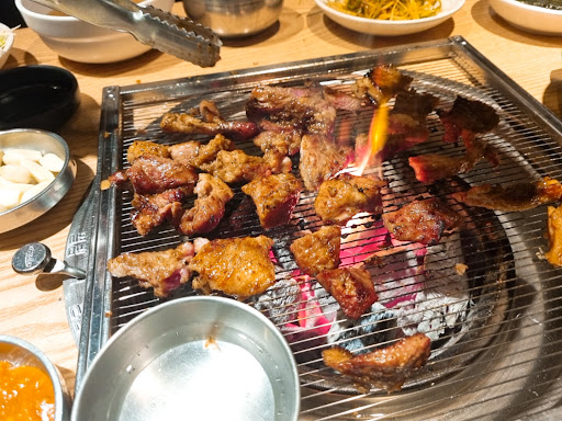 영도에서 나름 유명한 맛집이라고 합니다. 저녁 시간대에 방문해서 음식은 양념, 생갈비 둘 다 먹어보았습니다. 특이하게 양념은 피아노 줄? 같은 얇은 불판을 사용하고 생갈비는 일반적인 불판을 사용하더군요. 그리고 불판 가운데 종지에는 소주가 있어서 거기에다 마늘을 넣어서 조리하라고 하시더군요. 개인적으로 마늘은 고깃기름에다 구워 먹어야 한다고 생각해서 별로 마음에 들지는 않았습니다. 생갈비는 무난하게 맛있었던 것 같습니다. 하지만 저는 양념이 그다지 제 입맛에는 맞질 않더군요. 양념은 고기가 좀 육즙이 없고 건조한 느낌이었습니다. 후식으로 주문한 시락 국과 된장찌개는 그냥 무난 무난하게...