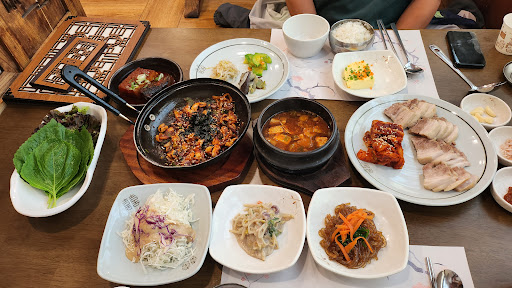 아쉬운점은 좌식 테이블이 2개 + 0.5개 인데 성인 4명이 일렬로 앉았는데 메인 음식이 그릇 3개에 나오다 보니 너무 멀어서 불편했어요 보쌈은 덜 식게 불 위에 놓아 주는데 먼곳에 있으니 덜어 먹어야 했고 더 따뜻하게 먹을수 없어 아쉬웠구요