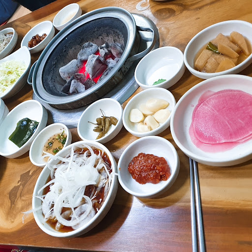 The 포구나무 house in 두구동, grilled 갈매기살, has a good atmosphere since entering the entrance. Even if the employees are busy because there are many people, they are kind. Grilled 갈매기살 are savory and delicious. And you can scoop ice cream for free at the end. My most recommended food is grilled 갈매기살 with pickled...