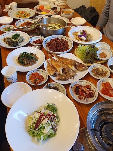 Read moreWaited 25min after lunch hour rush (2pm ish). Clean space, fast service, friendly staff who speak Korean only. The menu offers 5 different main dishes to choose from. Plenty of unique side dishes. Our favorites: salad yuzu dressing, fried fish, taco-like dumplings, smoked duck....