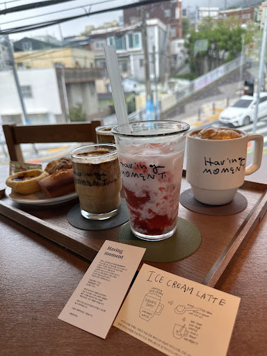 Charming and cozy café in Busan: We visited Having Moment Café on a Wednesday morning at 10 am, and it was like having the place to ourselves—truly a peaceful experience. The décor is really lovely, even on a gray day, which only adds to the charm. The café is tastefully furnished, creating a cozy and inviting atmosphere.