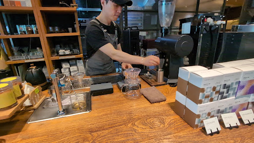 I asked for the enos specialty coffee. He weighed the coffee beans prior, changed the grind setting per a notebook according to the beans, ensured the grinder didn't have any retention by doing a dry run prior, weighed the water being poured into the pour over, and ensured consistent temperature by wasting a small amount of water to ensure the kettle spout was a consistent temperature as well.