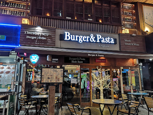 Yes, it is pricey, but the servings are really large. I didn't go on a Thursday, but I had their Thursday burger with fries. The burger is really large as you can see with; tomato, lettuce, cheese, grilled onions, raw onions, sweet pickles, thousand island dressing, fried egg, bacon, and oh yeah - a hamburger patty in a bun. A really good hamburger patty. It was so good, but afterwards I felt like a python that just swallowed a goat.๐ Truth be told, this was my second visit to Burger and Pasta. With so many food choices in town, I try not to repeat restaurants, but this one stuck in my memory, and I had to go back. Highly...