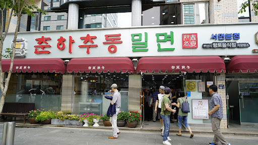 밀면은 부산 향토음식 중 하나이다. 1950년대 초반 6·25전쟁 시기 부산에서 탄생했다. 당시 미군 원조 등으로 흔했던 밀가루에 전분을 섞어 면발을 만들어 ‘밀면’이라는 이름이 붙었다. 전쟁 당시 이북에서 부산으로 대거 내려온 피란민들은 자신들의 고향음식인 냉면을 통해 생계를 유지하는 경우가 많았으나 전쟁통에 냉면 재료인 감자나 메밀을 구하기 어렵게 되자 구호물품으로 지급되던 밀가루로 밀면을 만들게 되었다는 설이 지배적이다. 그 중 밀면의 시조라고 불리우는 내호냉면이 원조집이라는 이야기도 있고. 밀면은 면발, 육수, 고명, 양념장(다대기, 다진 양념)으로 구성되어 있으며, 일반적인 국수들처럼 물과 비빔의 두 가지 형태가 있다. 밀면은 1990년대 후반부터 대표적인 부산 음식으로 인정받기 시작했고, 2000년대에는 다른 지역으로 확산됐다. 또 2009년엔 부산시의 대표 향토음식으로도 지정되기도 했다. 여느 향토음식들이 그렇듯 이 밀면 역시 부산을 대표한다는 4대밀면집이 있다. 물론 그 4대, 3대, 5대 이런식으로 분류되는 것이 반드시 개인적으로 맛집일 수는 없다. 맛은 주관적이니까. 여튼 부산을 대표하는 밀면집은 가야밀면, 개금밀면, 국제밀면, 춘하추동 정도를 말하고 여기에 영역을 더 넓히면 서호냉면, 동래밀면, 해운대밀면, 내호냉면등등 무수히 많아지게 된다. 나는 거론되는 밀면 맛집은 15년간 모두 가봤고 추가로 맛있다는 밀면맛집을 2-30곳은 더 가본듯 하다. 내 주관적인 맛평가는 각설하고 최근에 간 이 곳 춘하추동에 대해 객관적으로 이야기해보자면 ,