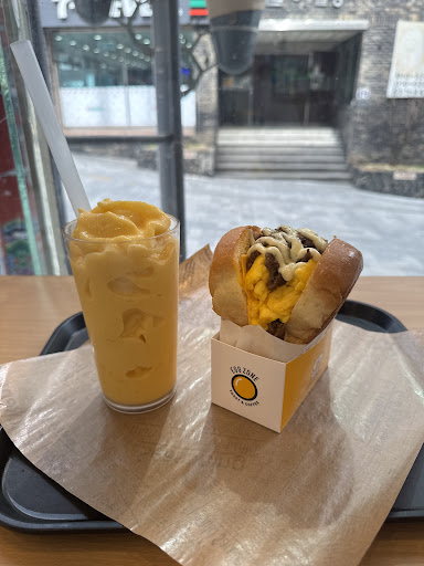 The lady at the counter greeted me with a friendly smile and was incredibly helpful in guiding me toward the perfect sandwich choice. I decided on the Bulgogi Egg Sandwich, and let me tell you—it was absolutely delightful. The balance of flavors, the tenderness of the bulgogi, and the perfectly cooked egg made for a satisfying meal. To pair with it, I got a mango fruit smoothie, which was refreshing and full of natural sweetness.