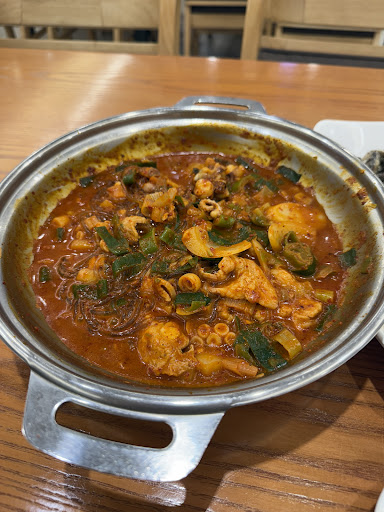 I got the stir-fried squid and pork belly, which was a great combo. The portion was perfect for sharing between two people and came with rice, noodles, and some banchans. Mixing everything together was the highlightโevery bite was...