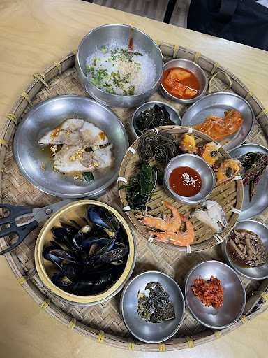 오랜시간을 기다리긴 했지만 만족스러운 식사였습니다. 전복죽을 주문하면 곁음식? 이 광주리에 먼저 나옵니다. 대부분다 맛있었습니다. 장육!! 파김치! 물회 등등 반주하기엔 딱이였습니다. 그리고 이가격에 이렇게 다양하게 나오는곳은...