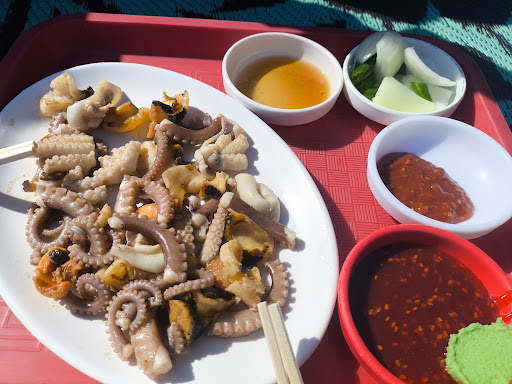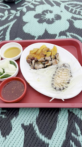 ย ย ย Read moreA truly unique seaside sashimi experience โ sitting cross-legged on a mat over rocks while enjoying ultra-fresh seafood ๐๐. Ordered flounder sashimi, live octopus (watching it wriggle as you eat is an experience on its own!), and sea squirts. Not cheap (โฉ100,000 for the flounder), but the atmosphere and freshness made it well worth it! Beware the long flight of steps down...