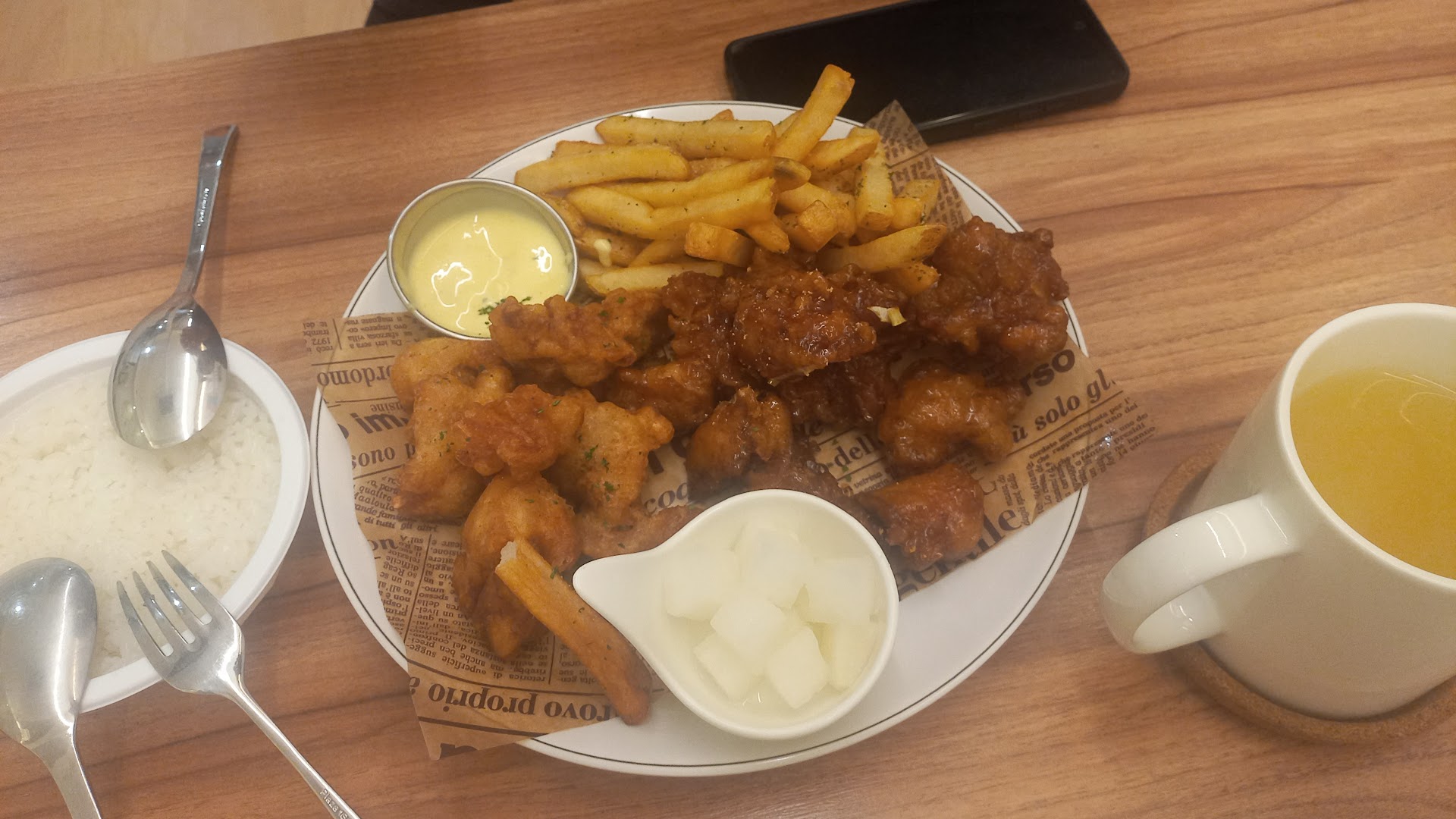 Read moreI found this food place after seeing it as Recommended in the Tourist Info Center's food guide and it was indeed a good recommendation. The couple running the place is very kind, helpful and friendly. They speak english and also can accomodate dishes to your spicyness tolerance. Even though it is located inside the market, there are actual tables in the room behind to eat there, with wc and hand soap. The fried chicken was excellent, you can pick 2 from 4 different marinade/sauces. It was tender inside and crispy outside. I was also able to try teokkboki with a less spicy sauce there (regular sauce also available of course). When I went back later that week and the owners remembered me immediately and chat with me and even helped me find my way through the market. It's heartwarming to be considered as a person, and not only a client until the moment you paid. So for all the above, the food, facilities, service and owners, i can only recommend...