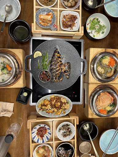 The grilled mackerel was expertly prepared, adding a savory note to the meal. Additionally, the assortment of wonderful side dishes complemented the main courses beautifully.