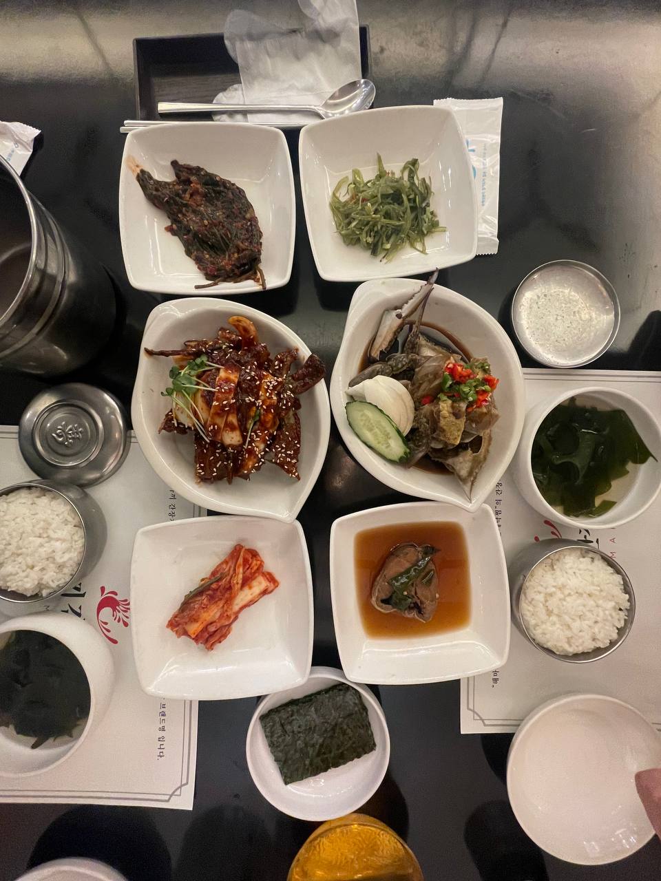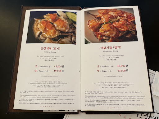 It was our first time trying 간장게장 (ganjang gejang - soy sauce marinated raw crab) and it was a yummy experience. Haemakki had options between female and male crabs, as well as single crab sets, bibimbap, and hot pots.