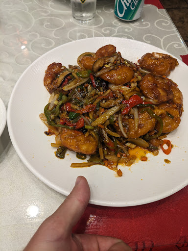 Average Chinese food. Large portions meant for family-style dining. Food comes out fast. Picture menu with English descriptions available. Small menu, mainly various chicken, pork or seafood dishes, rice dishes, dumplings, noodle soups. Two small steps to get into restaurant; no handrail, but you can hang onto the lions to help you if you need it. Also a tad expensive; $41 USD (includes one soda) for a meal for two, or three...