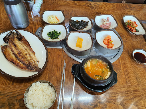 Read more생선구이 집인데.주차시설이 없는듯 길가 주차했고 날씨도 좋았는데 들어가는 입구에서 부터 생선냄새가 너무 심하게 남.생선가게라지만갠적으로 생선 비린내는 싫어하는 1인으로 다른곳들 보다 심하게 나서ㅜ 친절도도 떨어지고 고등어구이는 고등어 한마리 갈치구이는 갈치 한토막 ...가격은 착해서 한끼론 괜찮지만...두번은...