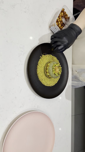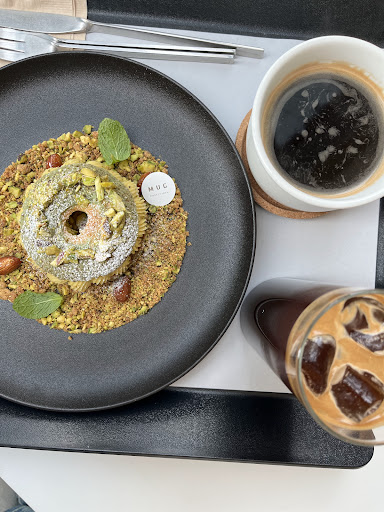 Desserts: We had a leisurely afternoon in this cafe. The Paris Brest was tastefully done beautifully placed on a bed of crumbled pistachios. The featured peach dessert had a lychee mousse and peach lava filling. The vanilla lemon Mille feuille had a nice touch of passion fruit. Mug Dessert Lab is a quiet cafe located on the third floor of a building.