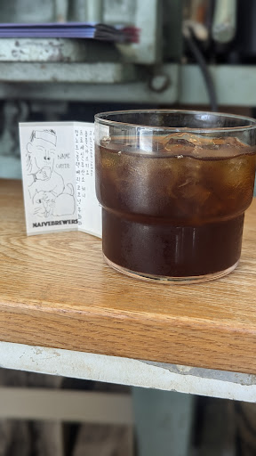 Established in 2017 in the popular cafe district of Busan's Jeon-po dong, Naive Brewers quickly outgrew it's original premises and now runs two cafes in the same suburb. The space has a workshop vibe from the outside with wall-to-wall retro furniture, exposed concrete interior and a main counter brimming with coffee brewing devices.