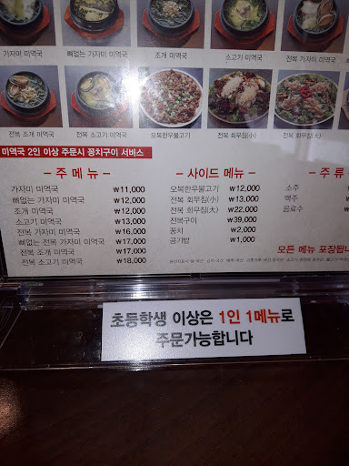 Read more최악의 미역국음식점. 우선 기본 식대가 높으나 (기본가자미미역국11000원, 소고기미역국13000원) 그수준의 품질로 반찬이나 메인세팅이 되지않는다. 단순히 집에서 오래끓인 정도의 품질. 밑반찬은 손이 갈게없고 그나마 애들이 먹을수 있는건 계란말이 딱세개. 딴에 사람수 생각하며 주는것인양 아주 생색내는 서버. 사람 넷에 세명 주문(애기둘)했다고 계란말이가 세조각. 어이가없었고 좀더달라니 먹을거라도 넘치는양 다먹고 얘기해란다. 게눈감추듯 먹고 더 요청하니 이번엔 계란말이 두조각. ㅎㅎ 이정도의 수준이고. 서버가 뭘 갔다줄땐 상당히 기분나쁘게 서빙함. 본인이 말없이 무뚝뚝한것과 불친절은 개념이 다르다는걸 알아야함. 너무 돈 아까움. 본점인곳이 수준이 이럴진대 나머진 볼것도 없음. 우리뿐 아니라 손님이 들어와도 주문받을 생각을 안함. 미리 뭘 하겠냐는 말보다 고객이 두세번 주문안받냐고 요청하는일이 내가 밥먹는 1시간20분동안 쭉 보아왔던 100프로. 마인드를 바꾸지않는한 뜨내기손님만 낚일뿐 대성은 못할것같다. 사진은 찍기 싫을만큼...