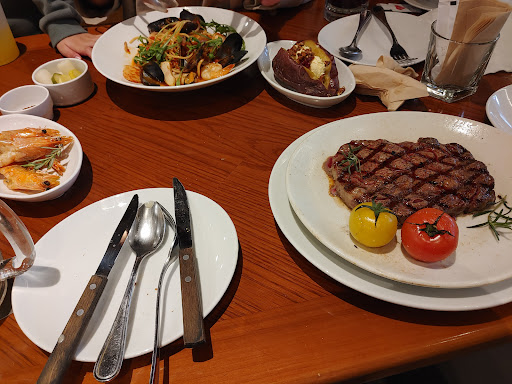 Outback Steakhouse is one of the best restaurants in Korea and it can be found throughout the country. Soft and juicy steaks, as well as many kinds of pasta, are on the menu. The Tomahawk steak is very tasty and the Toowoomba pasta is very creamy. One of the side dishes, the mushroom soup, is so good as an appetizer. Although the restaurant is in an old building, the interior is very clean. The dishes are not served that quickly but the staff are very kind. The price may be quite expensive, but it is definitely worth going to. I strongly recommend this restaurant to you if you want a great meal with your family...