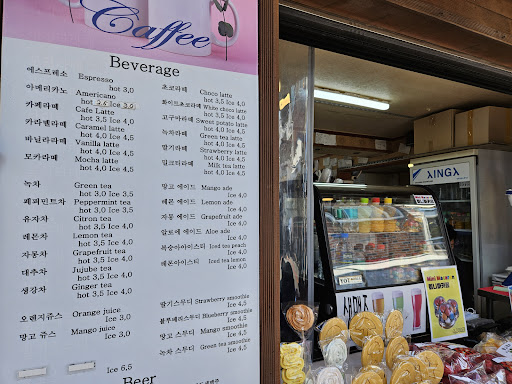 A charming and relaxing little cafe located in Gamcheon Culture Village. They have an extensive selection of drinks (coffee, tea, smoothies, beer) and a few snack foods. The service was very friendly and the drinks were delicious. The peach iced tea was so refreshing on a warm day with just the right amount of sweetness. There are only about 5 tables inside, so there is a walk-up window for to-go orders. This cafe is a cozy, thirst-quenching spot that adds to the whimsy...