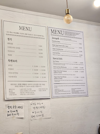Very nice food, I'm a vegetarian and I was visiting from Scotland to visit my daughter who lives in Busan, she recommended it, this was the place of my first and last meal in Korea. The owner / staff are very nice and there is an English menu, I was ok as my daughter ordered in Korean but if I was alone I would have had to use the English one so it is...