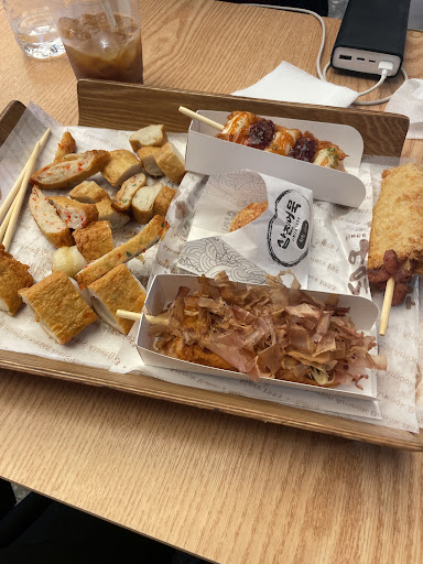 Not a big fish cake fan but the store enjoyed a brisk steady business. People were walking out with big set gift boxes of fishcake & loading them into cars. We bought the 'Goblin's mace' since we all watched the kdrama. It's a blend of pretty good fishcake paste & potato & hot dog. The staff made every effort to be helpful bec we didn't speak any Korean. The English description were very small. The latte was a good price & sitting upstairs in the cafe overlooking the Busan station, watching the world go by made the morning pleasant. Nice change from the...