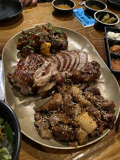 There was a built-in heating plate on the table that kept the jokbal warm, which was a really nice touch. The rice balls were also delicious. Side dishes like the salad was refillable (self service).