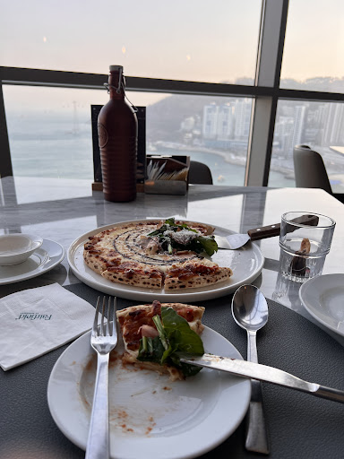 Ordered a prosciutto Pizza. Hardly any parma ham, covered in cheese. Bland as can be. The base was soggy. The worst pizza I have ever eaten. Reminded me of a frozen pizza, reheated in a microwave. Left 3/4 of it. The view of the beach was beautiful , but you will not get any sunset.