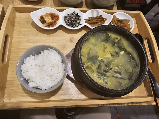 Meals were served on a wooden tray with flavourful banchan sides and clam miso soup. The clams were also quite tender.