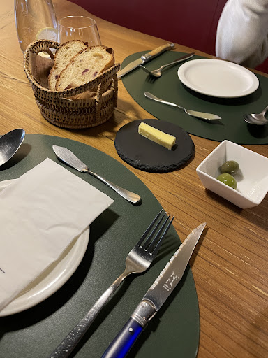 식전빵 따뜻하고 맛있음. 버터에는 소금을 살짝뿌려주시는 세심한 서비스 올리브는 씨가 있음. 식전 나쁘지 않음