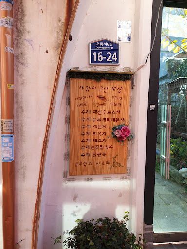 Read moreI visited “사랑이 그린 세상” with my friend last week. I like its Warm and Vintage atmosphere. Also, The staffs are very kind. My favorite menu is “Blueberry lemon” The drink contains a lot of real blueberry, so the drink was sweet and delicious and This drink goes well with bread. It’s 6300won, and I think it is quite a little expensive price. The only weak ness of this perfect cafe is that it is hard to find because it’s...