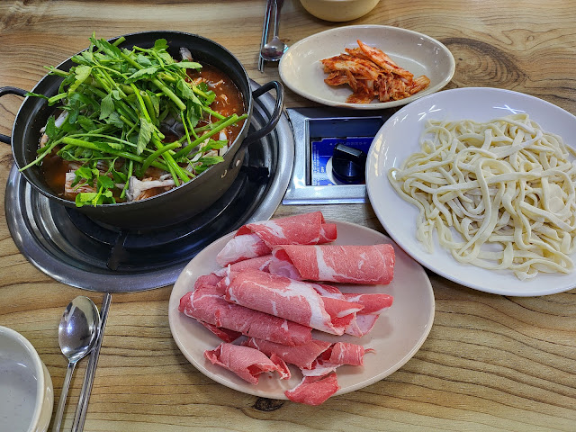 일반 바지락 칼국수라기 보단 샤브샤브 칼국수가 맞는 표현인거 같습니다. 인당 9000원 정도 인데 맛이 좋은 편이고 가성비가 좋습니다. 비슷한 구성을 12000원에 먹은 기억이 있는거 같아요. 버섯,미나리+샤브샤브+칼국수+볽음밥이 기본 메뉴입니다. 버섯이나 샤브샤브는 추가가 가능 합니다. 버섯은 좀 크게 썰어서 아이들이 먹기엔 불편합니다. 샤브샤브는 고기가 쫄깃쫄깃 식감이 좋았습니다. 칼국수는 이집에 써놨듯이 손칼국수라서 식감이 좋습니다. 볶음밥은 조금 싱거왔습니다. 만두나 다른 메뉴를 먹게 되면 다시 리뷰 해볼께요. 느낀 단점은 먹는중에 서빙분 께서 그릇을 휙휙 가져가십니다. 그릇 치워드릴께요 말한마디 해주시면 담사한데, 말씀 안하시고 휙 가져가시니 깜짝깜작 놀랍니다. 첫 방문 이신 분들은 리뷰를 보고 방문 하셔도 좋을꺼 같아요. 자주는 아니지만 기억 날때...