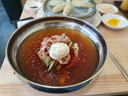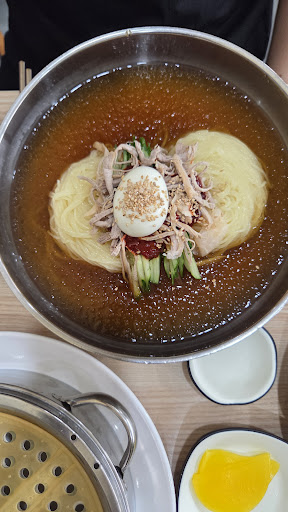 Read more지나가는길에 항상 사람들이 줄서서 먹길래 오늘 즘심시간전에 사람 없을때 한번 가보았습니다. 여름에 냉면은 가끔먹는데 밀면은 많이 안먹어보서 호기심에 한번 가보았네요. 11시쯤 갔다니 손님이 없어서 기다리지 않고 먹을수 있었네요. 개인적으로 시원한 물냉면을 좋아하는편이라 오늘도 물밀면 시켰네요. 물밀면 나오기전에 구비되어있는 뜨거운 육수 먹어보았는데 맛있네요. 그다음 물냉면 나오기전 수육나오고 다 먹어갈때즘 기다리던 물밀면 나왔습니다. 맛은 괜찮았습니다. 너무 기대배서 그런가요?. 개인적으로 냉면이 맛나다고 생각합니다. 다른사람들이 번호표까지 뽑아가면서 먹을 정도의.맛은 개인적으로 아니라고 생각합니다. 이더운날 줄서서...