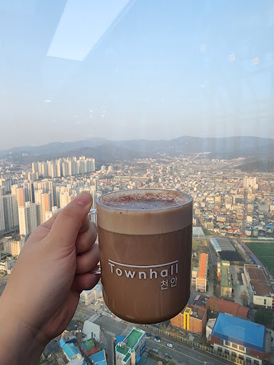 천안여행을 왔는데, 야경 전망을 봐야된다 싶으면 여깁니다. 360도로 통창 유리창으로 되어있습니다. 카페 내부에서 자리찾을려고 돌다보면, 천안 도심이 한바퀴 돌면서 전체 감상이 가능해요. 포토스팟이 더 기가막힌거는 경부고속도로 야경이 보이는데, 햐.. 앉아있으면 많은 생각이 듭니다. 공상하기 좋고, 생각 정리하기에도 좋아요. 사람이 많아서 빡빡한거 같으면서도, 차단이 잘 되는지 막상 앉으니 조용하더라구요. 주차는 이 건물이 힐스테이트건물인데 지하주차장에다가 대면 주차비를 따로 받지를 않으셔요. 음료 가격은 아주 저렴한 편입니다. 저는 광교에 힐스테이트 스벅정도 생각했는데, 그것과 견주어도 괜찮을만큼 너무 좋았습니다. 한때 광교호수공원뷰를 보기위한 경쟁을 했었던거 같은데, 천안에도 스벅은 아니지만 그와 유사한 퀄리티로 만들어진 타운 홀 카페, 은근나름 만족스러웠네요.♡ 다음에 야경 보여줄일이...