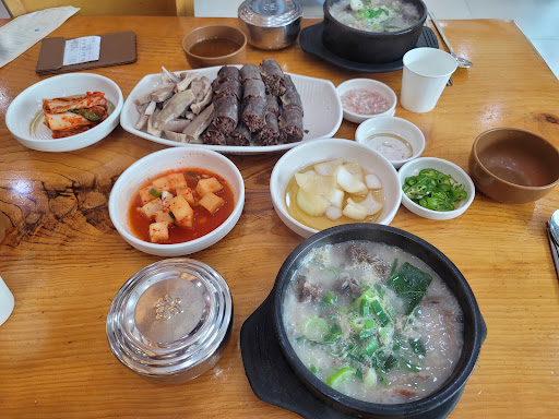 Read more맛있음. 호불호 없이 맛있는 맛인데 경남사람으로서 솔직히 돼지국밥 맛집의 국물보다는 약간 빈 맛임. 아예 다른 음식인걸 감안해도 잘하는집 돼지국밥이 있으면 굳이 순대국밥을 먹을 거 같지는 않음. 하지만 병천순대의 진짜는 그냥 개맛있는 순대인듯. 순대가 13000원 한접시에 배터지게 나오고 소금, 새우젓과 궁합이 미치게 좋음. 양파, 깍뚜기와도 잘 어울리고 다음에 또 간다면 국밥 말고 순대만 두접시 먹고 싶을 정도로 경남지역에서 여태 먹었던 가짜 병천순대들을 압도하는 맛있는 순대임.