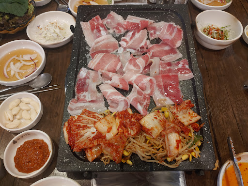 I really enjoyed this restaurant. Affordable BBQ with all the usual sides. Lettuce, perilla leaves, sliced pickle radish to use as wraps, a salad mix...There’s a self-serve area where you can grab more of these sides. My favourite thing about this place is the slanted grill! All the juices from the cooked meats flavour the kimchi & bean sprouts well. It’s been 5 years and I still think it’s one of my favourite k-bbq...