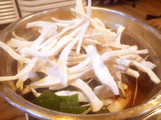 Read more왜저기가 맛집이지? 달고 짜고 맵고 김치도 달고 동치미도 달고 1인기준 11000원 기본반찬 김치달랑ㅋㅋㅋ1개 나머지 빈그릇 천지.... 돼지등갈비인데 양은 너무 적은것같고 기본으로 들어가야할 버섯,우동,당면,등모든 메뉴는 추가금 콩나물은 조금만 끓였는데 실처럼 가느다란 마른콩나물되버리고 (저런콩나물 엄청 싸구려인데) 30분도 않되 뭣하고 나왔는지모르게 4명이가서 내생에 제일 짧게 먹고나온 맛집? 이라는데 나한테는 제일 단집. 개인적으로 모든 메뉴 비 추천 ! 처음이자 마지막집 살아생전 두번다시 안갈집 복대동 분들진심 맛집을...