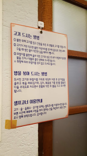장점 첫째, 현대식 건물로 깔끔하고 기호에맞게 조리가가능하다. 둘째, 주차장이 근처에 없는 가게가 많지만 주차장이 있어서 협소하지만 2시간 주차가 식사고객에겐 가능하다. 셋째, 상추, 고추, 파절이, 마늘, 고추 야채를 눈치없이 많이 셀프바를 통해 자유롭게 이용이 가능하다. 넷째, 볶음밥을 기호에 맞게 제조해 먹을 수 있다.