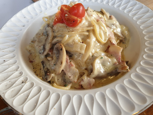 알리오 올리오 파스타를 먹었음. 마늘은 적당히 바삭하고, 오일은 풍부했고, 면도 적당히 익혀서 파스타를 맛있게 먹었음. 가격은 일반 파스타 집보단 1,2천원 비싸지만 호텔 식당 치고는 싼 편. 옆사람 로제 버섯 리조또도 먹어 봤는데, 버섯도 많고 맛도 훌륭했음. 양은 적지 않고 보통이었음. 남자 혼자 먹기에 많진 않았지만, 부족하진 않았음. 까르보나라는 비주얼만 봤는데 국물도 진해 보였고, 매우 괜찮았음. 기본 나오는 빵 맛 괜찮고, 연어샐러드, 치킨샐러드도 괜찮았음. 샐러드의 모습은 알록달록한 소스가 다이아 격자모양으로 뿌려져 있어서, 뭔가 엄마표스러운 레트로 스타일의 인상이었으나 다행히 맛은 그보다 세련되었음. 웨이터 웨이트리스 모두 친절하였고, 시설은 깔끔하였음. 특별한 부분은 없으나 괜찮은 곳임! 앞에 작은 정원과 벤치가 있어서 먹고 바람...