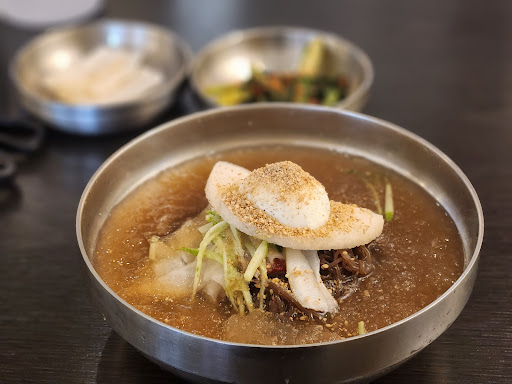Read more오픈한지 얼마 안 된 것 같은데, 벌써부터 입소문 타고 찾아오나봅니다. 서울에 있는 유천냉면이 본점이라고 하네요. 여기는 식전에 나오는 육수가 맛있습니다. 감칠맛에다 고소함 추가된 우리가 아는 그 맛! 메밀면보다는 냉면이 맛있는 것 같습니다. 냉면 좋아하면 냉면 추천 👍 냉면을 좋아하진 않지만 함께 온 분들에겐 육개장과 만두 추천. 그리고 들기름 메밀면 같은 메뉴도...
