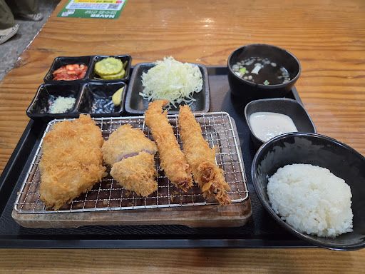모듬까스 13,000원짜리 먹어봤습니다. 왼쪽부터 등심, 안심, 새우입니다.