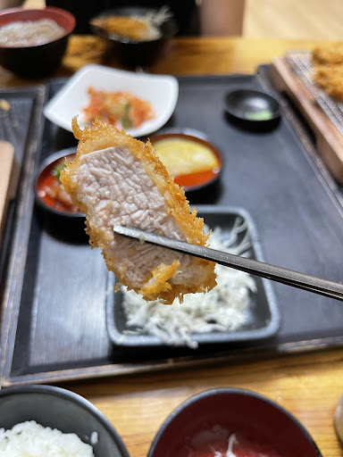 등심이나 안심이나 육질이 굉장히 부드럽습니다. 비슷한 일식 돈까스집 하나 아는 곳이 있는데 거긴 좀 쫄깃한 육질이었거든요. 애랑 먹으러 가면 가위로 잘라줘야 하는데.. 여기선 앞니로도 수월하게 잘립니다. 남다른 연육 숙성 작업을 따로 하시는 것 같네요. 일식돈까스 특성상 튀김옷 때문에 나중에 입천장이 좀 따가운 건 어쩔 수 없습니다 ㅋㅋ
