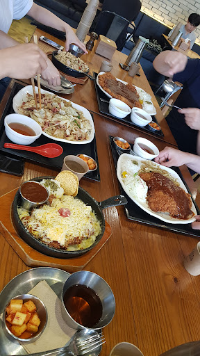 Read more1.왕돈가스는 성인1명에서 먹기 힘들어서 2인이상갈때 돈가스+면요리를 시키는걸 추천합니다. 2.돈가스소스를 매운소스로 일정금액 추가지불해서 바꿀수잇는데 매운걸 좋아하신다면 추천 그냥 어쩔때 먹는다 하시면 일반소스를 추천해요. 계속먹으면 매운맛밖에 안느껴져서 개인적으로 비추 3.세트a가 인기메뉴 1위지만 개인적으로 불호입니다. 야채볶음우동+돈가스 구성인데 둘다 느끼해서 우동은 무슨맛인지도 모르겟고 배고파도 얼마 못먹겟는맛이더라구요. 저녁시간때가서그런지몰라도 나이프랑 포크에 세트에 주는 국물이 넘쳐서 바꿔다라고해도 잊어버리고.. 그냥먹엇는데 같이갓던 친구는 주문이 잘못들어가서 다른메뉴가 나와 서로 먹는거 기다려줬던 최악.. 그냥 왕돈가스드시고 남는거...
