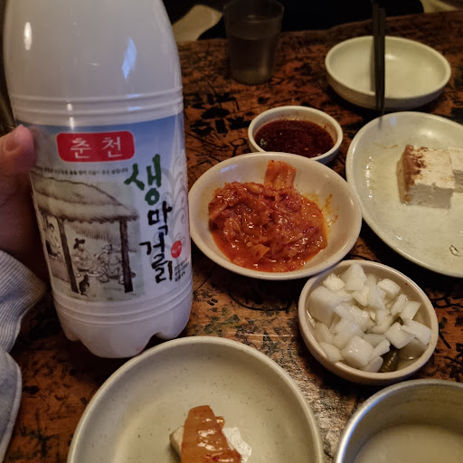 Read more파전하면 떠올랐던 막걸리 맛집 오랜만에 막걸리가 마시고싶어서 갔어요 자리 없을수있으니 전화해보구가세용 기본안주 두부와 볶은김치,양파절임을 주셨고 파전과 돼지김치두르치기를 주문해서 간장도 주셨어요 주문이 조금달랐어요 테이블번호옆 큐알코드를 인식하고 카톡으로 주문하는 방식이에요 음식이 조금 늦게 나와요 두부와 볶은김치파전돼지김치 두르치기 순으로 맛있었어요 파전에서는 조개 껍데기가 조금씹혔고 파가 많이 줄어든것같다는..기분탓? 돼지고기 두르치기는 고기가 조금 잡내가 났고 간이셌어요 막걸리는 춘천 막걸리, 사진에는 없지만 소양강나루터막걸리,국순당막걸리,알밤막거리 춘천막걸리 순으로 주문하고 마셨어요 단맛은 춘천막걸리알밤막걸리소양강막걸리국순당막걸리 순으로 강했어요 춘천막걸리 리얼 노랑색 묽은 요구르트맛나서 너무 맛있고 향기롭고 진짜 좋았어요 두부김치 추가 가능해서 시킬수있어요 두부김치와...