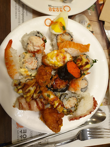 Sushi is the main food here. It also has varieties of food items at the salad bar. There are around ten kinds of desserts or sweets. For beverages they have juice, coffee and cider etc. Overall it's a best place for the food lovers. For corona, they are taking precautionary measures which includes checking the body temperature and providing gloves to each cutomer at the entrance. People are not allowed in the resturant...